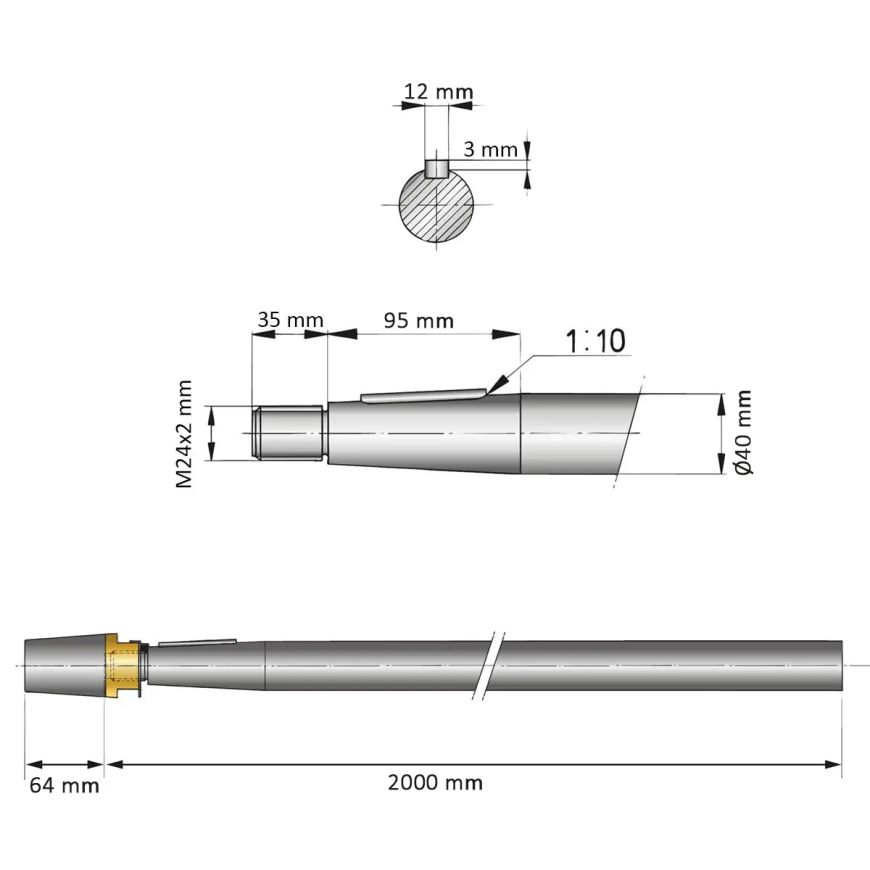 40 mm - L:2000 mm - Propelaksel med møtrik og anode
