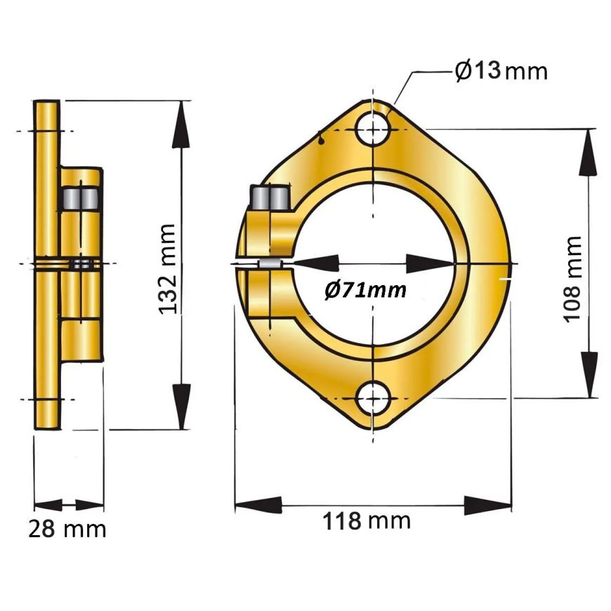Bronze mounting flange for VETUS BL45 series stern tubes.Internal bronze mounting flange for VETUS BL45 series stern tubes.