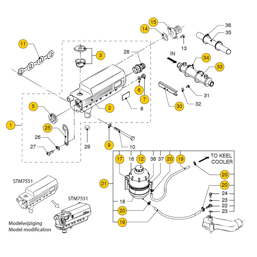 Vetus M4.15 - M4.17 - M4.35 - M4.45 Keelcooler manifold