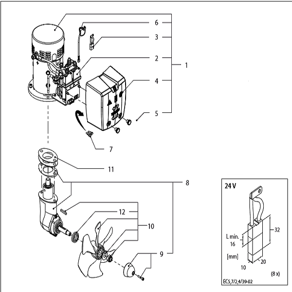 1 SET0160 24 Volt truster motor incl. solonoid for BOW125 Køb nu og modtag den mellem 08.12.25 og 10.12.25