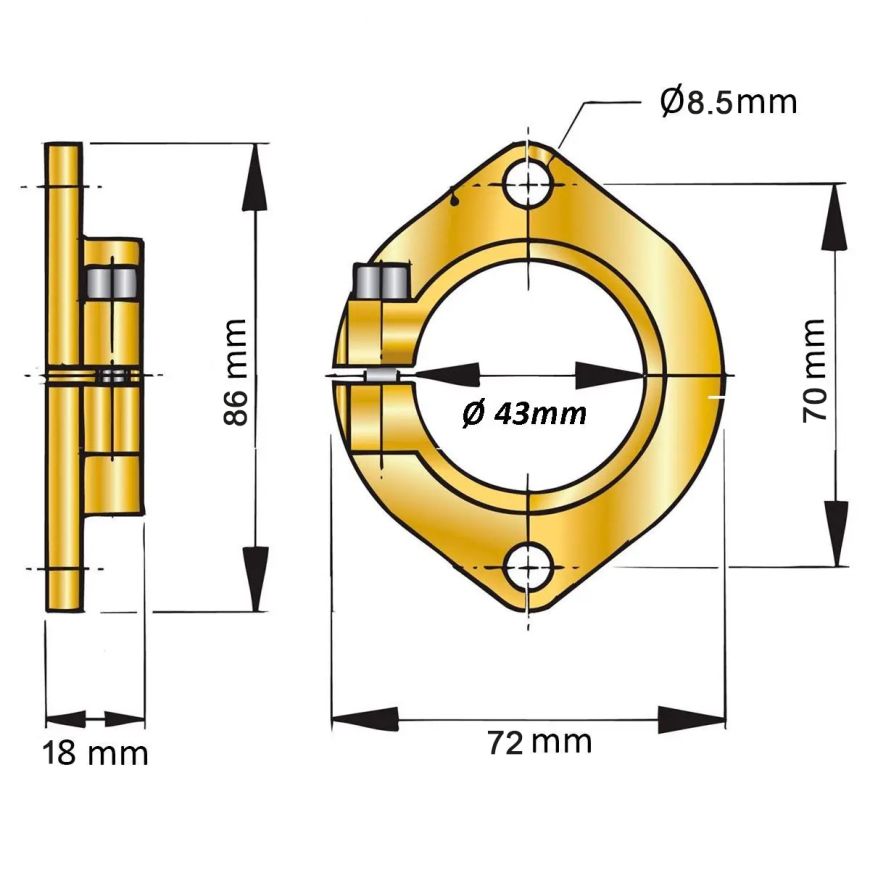 Bronze mounting flange for VETUS BL25 series stern tubes.