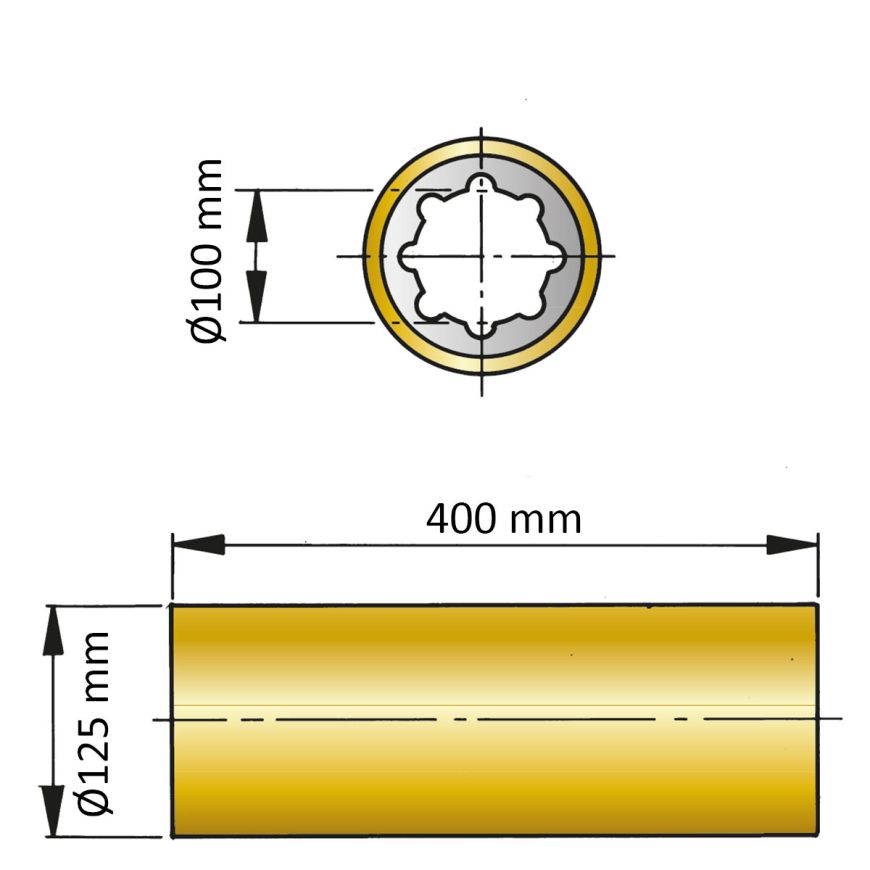 ØA 100 mm x ØB 120 mm x C 400 mm - vandsmurt stævnrørsleje / gummileje i messing