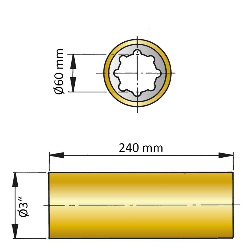 ØA 60 mm x ØB 3" x C 240 mm - vandsmurt stævnrørsleje / gummileje i fenol resin