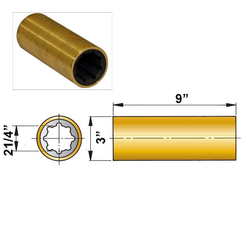 ØA 21/4" x ØB 3" x C 9" - vandsmurt stævnrørsleje / gummileje i messing