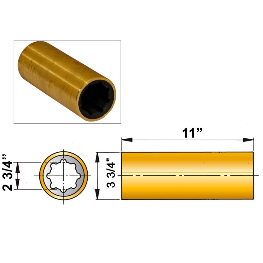 ØA 2 3/4" x ØB 3 3/4" x C 11" - vandsmurt stævnrørsleje / gummileje i messing