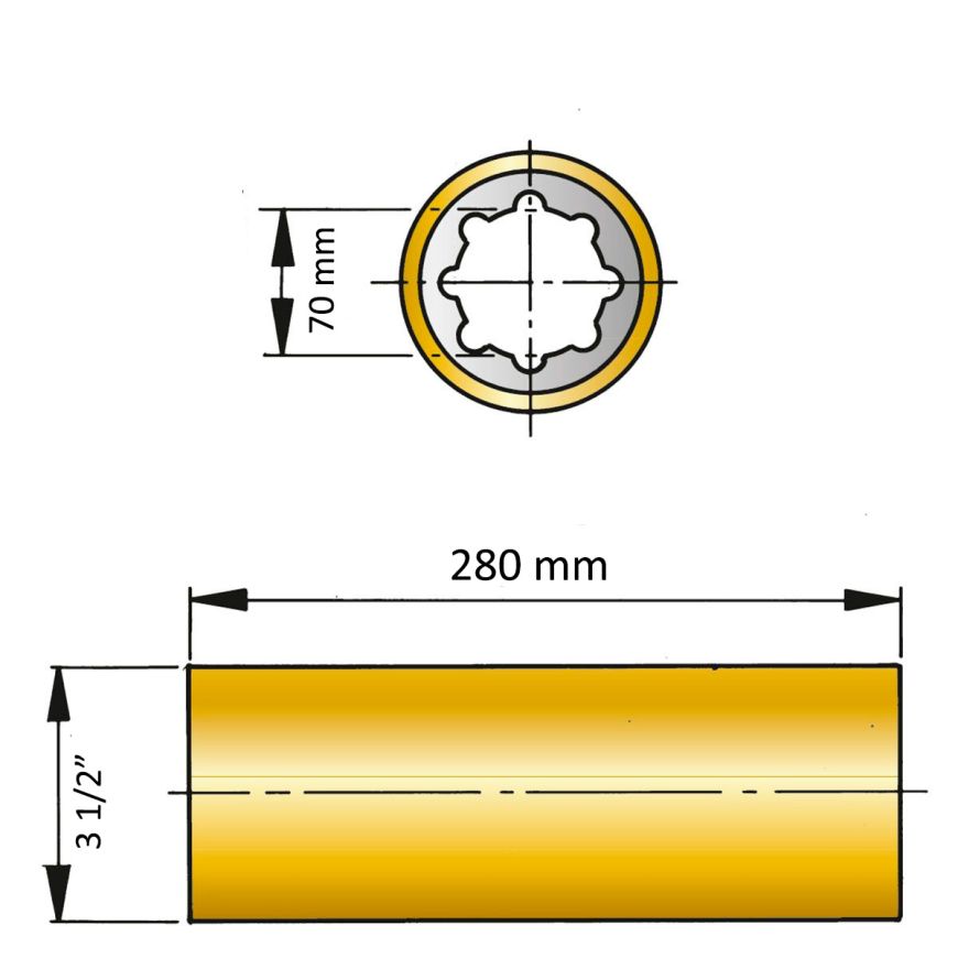ØA 70 mm x ØB4" x C 300 mm - vandsmurt stævnrørsleje / gummileje i messing