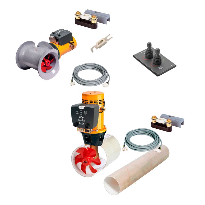 Vi har her forvalgt den mest typiske konfiguration af dele til installation af en 95 kgf bov og agterpropel på din båd - du kan ændre i antal for hver vare i sættet og således sammensætte til dit behov.